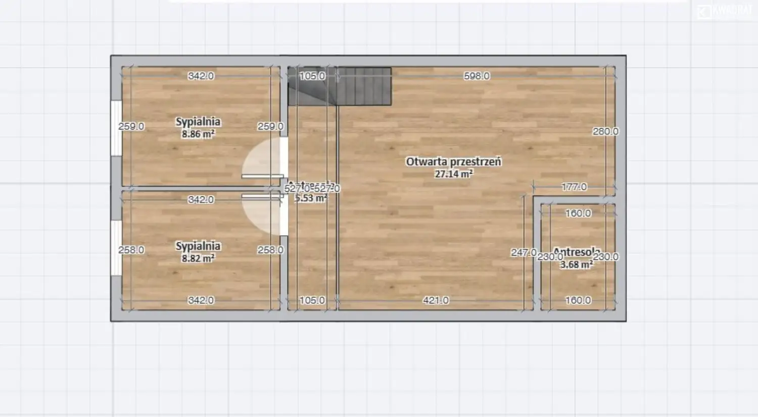 Poddasze o pow. całkowitej 27,09 m² składa się z: