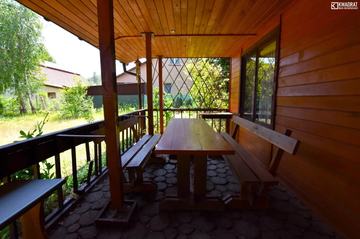 Dom usytuowany na działce o pow. 1222 m² o kształcie trapezu. Działka jest w pełni ogrodzona i jest częściowo zalesiona,