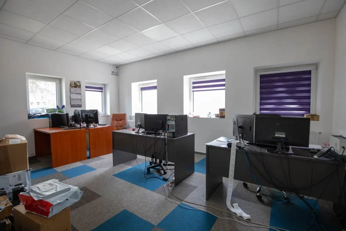 - instalacje: alarmowa (dwie strefy), czujniki dymu, komputerowa z serwerownią, światłowód, cyfrowy monitoring CCTV z rejestratorem.