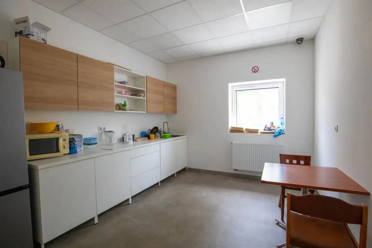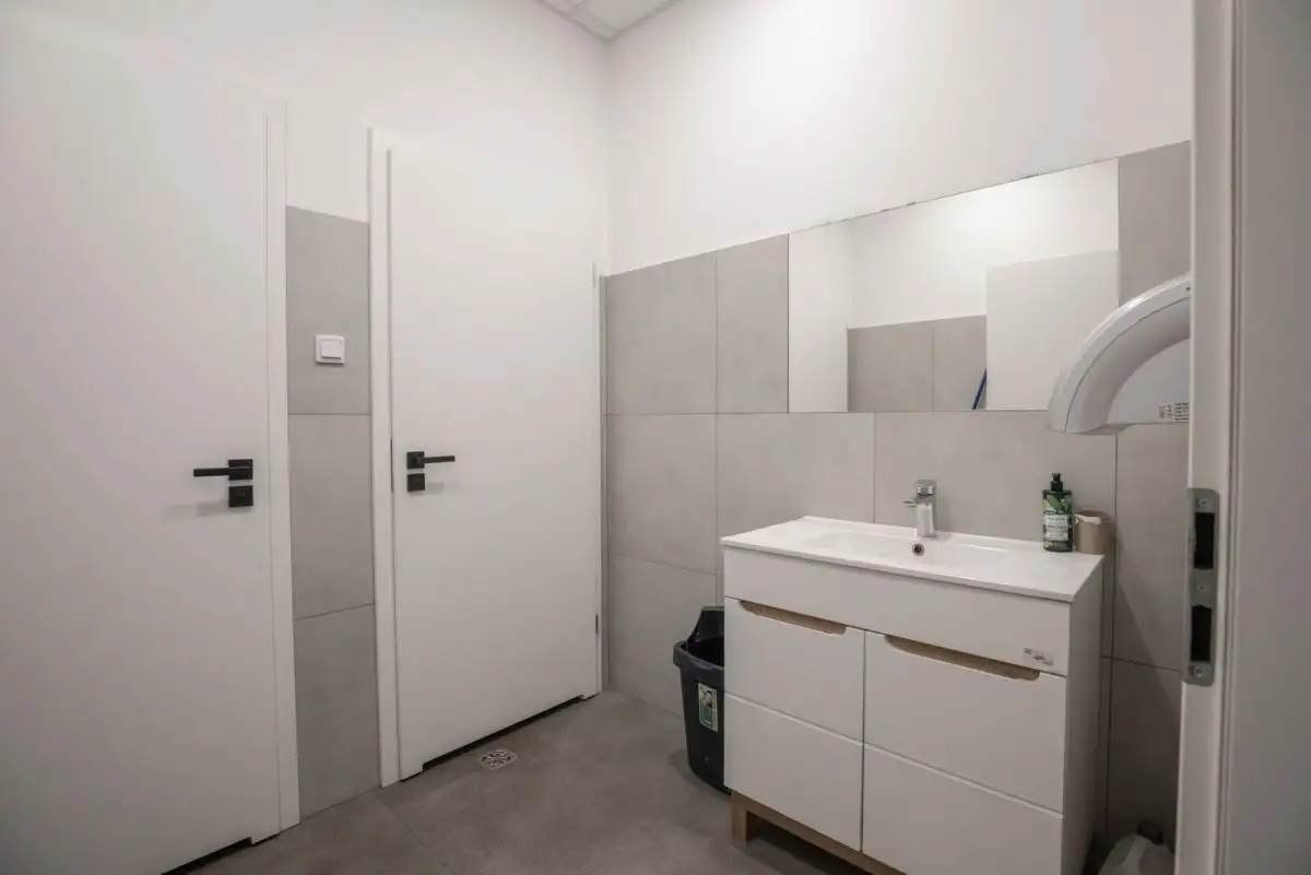 - na podłogach strukturalna wykładzina (możliwość wymiany na panele), sufit podwieszany z oświetleniem LED.