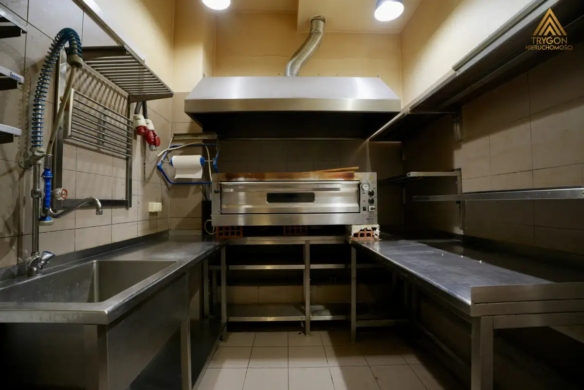Kuchnia wyposażona w duży piec do pizzy. Lokal gotowy od zaraz do wejścia. Wynajmowany z pełnym wyposażeniem. Zdjęcia przedstawiają aktualny przedmiot najmu.