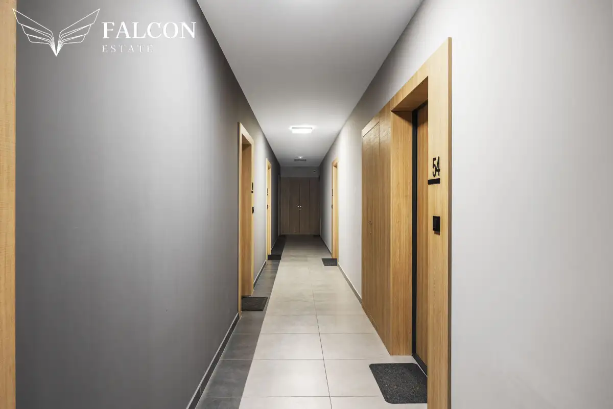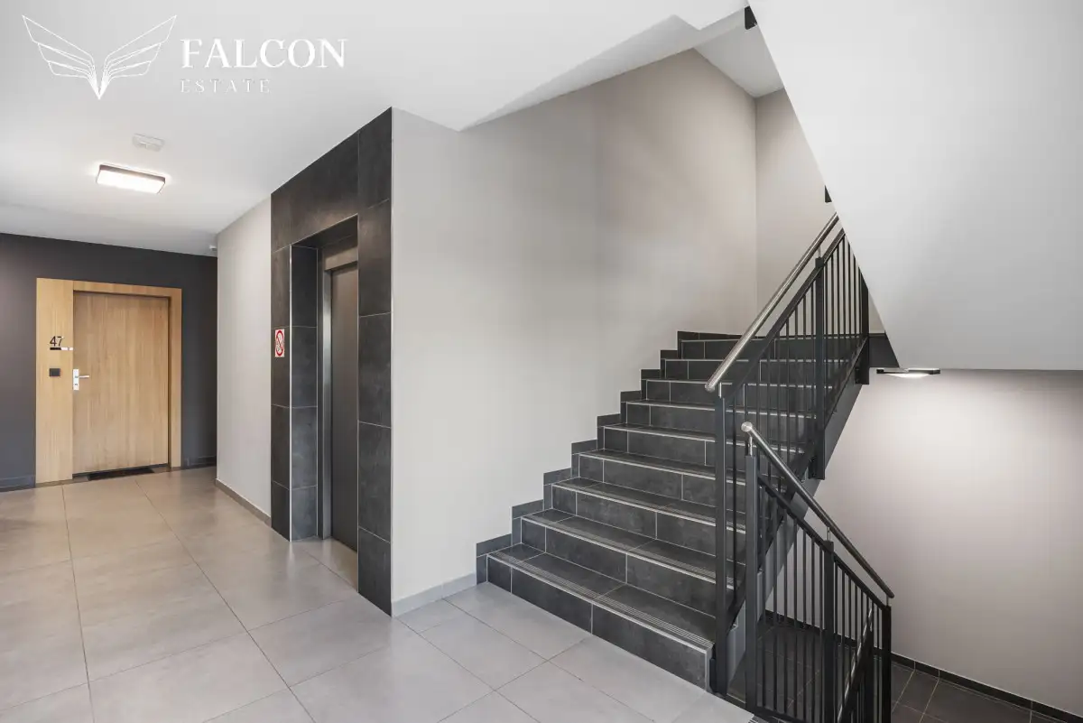 Mieszkanie znajduje się na 5 piętrze budynku, dzięki czemu gwarantuje doskonałe doświetlenie - ekspozycja południowo-zachodnia zapewnia słońce przez większość dnia.