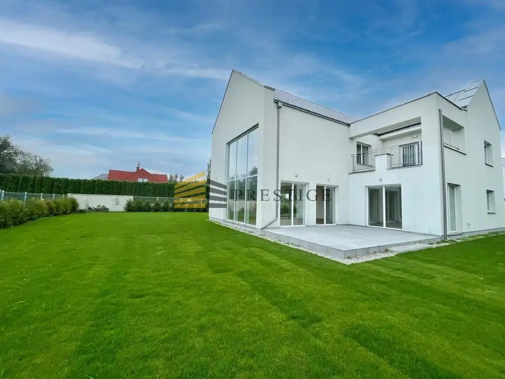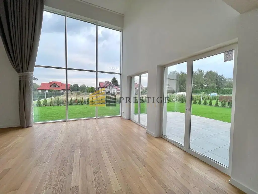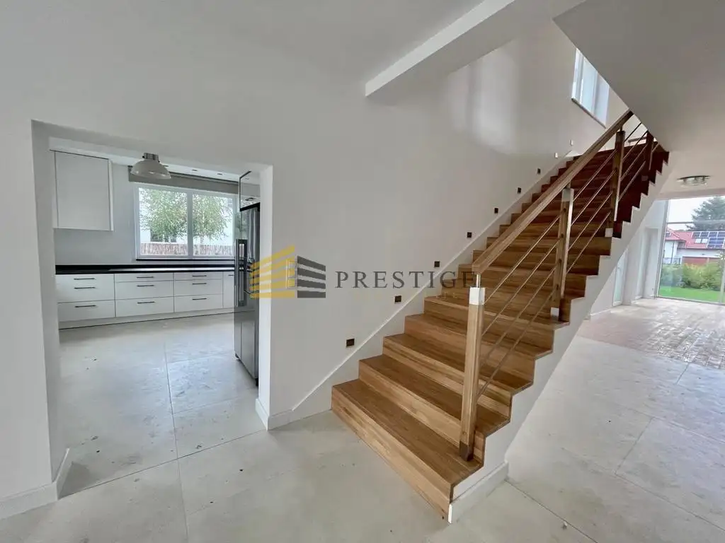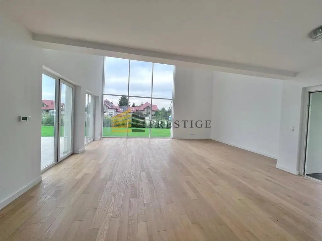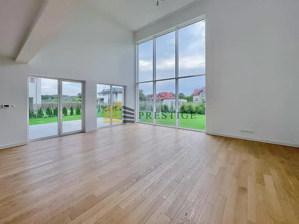 A dream home for a large family in the vicinity of the Vistula River and green areas. The house is finished to a high standard, using natural raw materials in neutral colors. Bathrooms finished in neutral colors, the perfect space for any arrangement. The house has a very unique lounge with huge windows overlooking the garden and high ceilings. The property also has a landscaped garden.