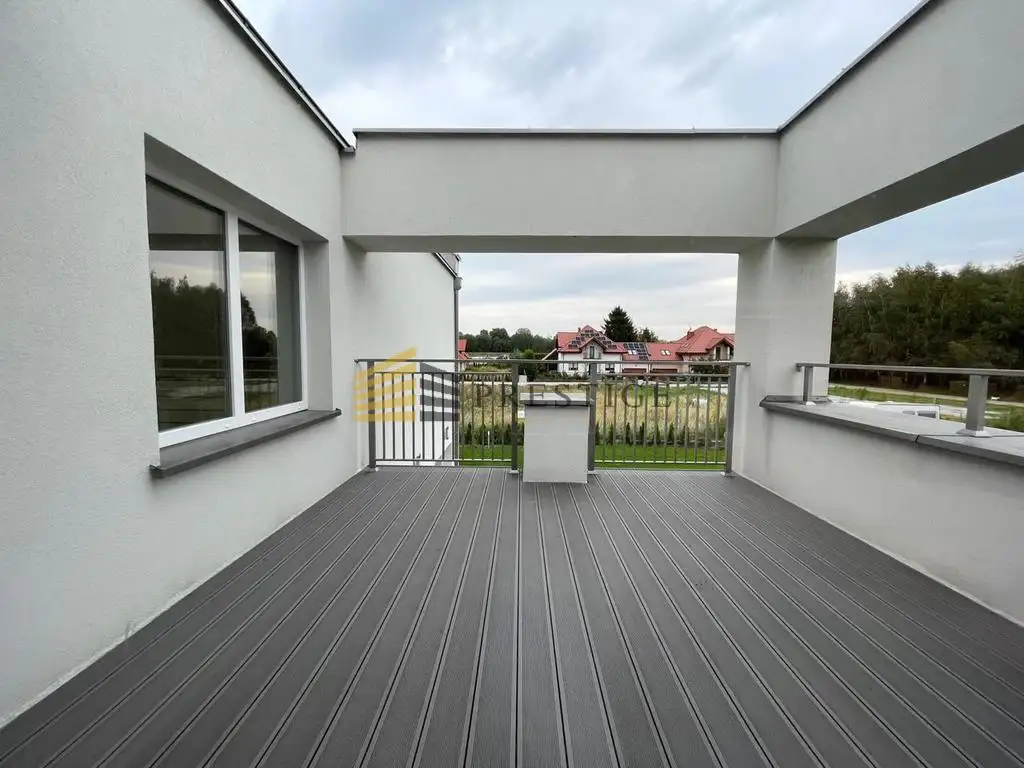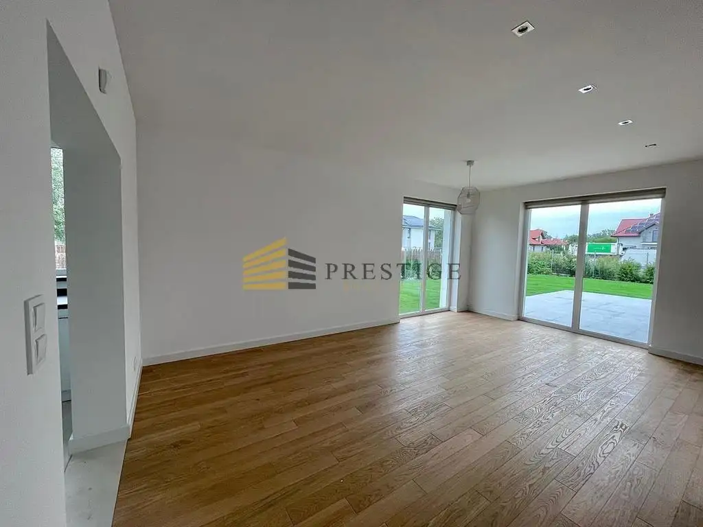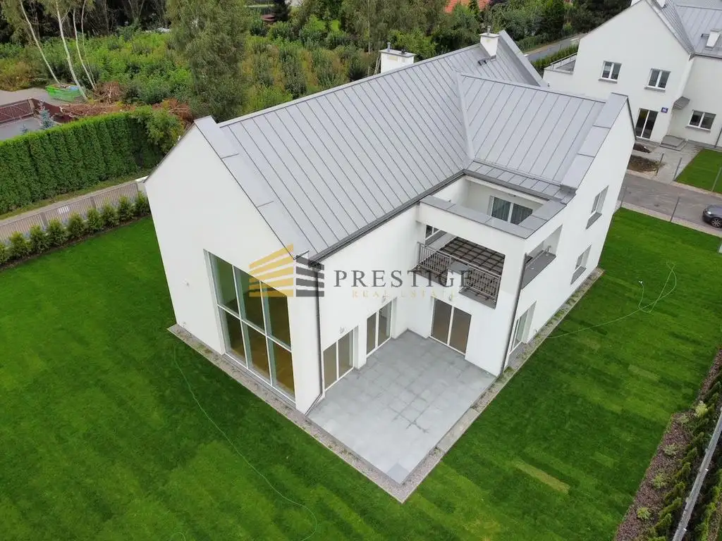 The subject of the offer is a large house in the Wilno-Zawady district of Warsaw. It is located in an intimate estate of single-family houses. The house has been designed with the maximum comfort of its users in mind. The heart of the house is a spacious living room with huge windows and a high ceiling that gives an amazing feeling of space and light. On the ground floor, you will also find a modern, fully equipped kitchen, dining rooms and a toilet. located The intimate atmosphere and the proximity of green areas guarantee peace and the opportunity to enjoy the charms of nature. The house also has 4 bedrooms, 2 bathrooms, spacious terraces by each bedroom and a garage for two large cars. Possibility to park another car in the driveway.