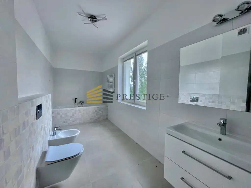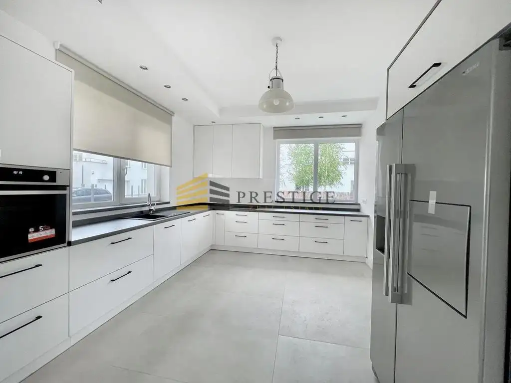An elegant house for rent in Wilanów. Perfect location and good neighborhood. Located in a quiet housing estate of single-family houses.