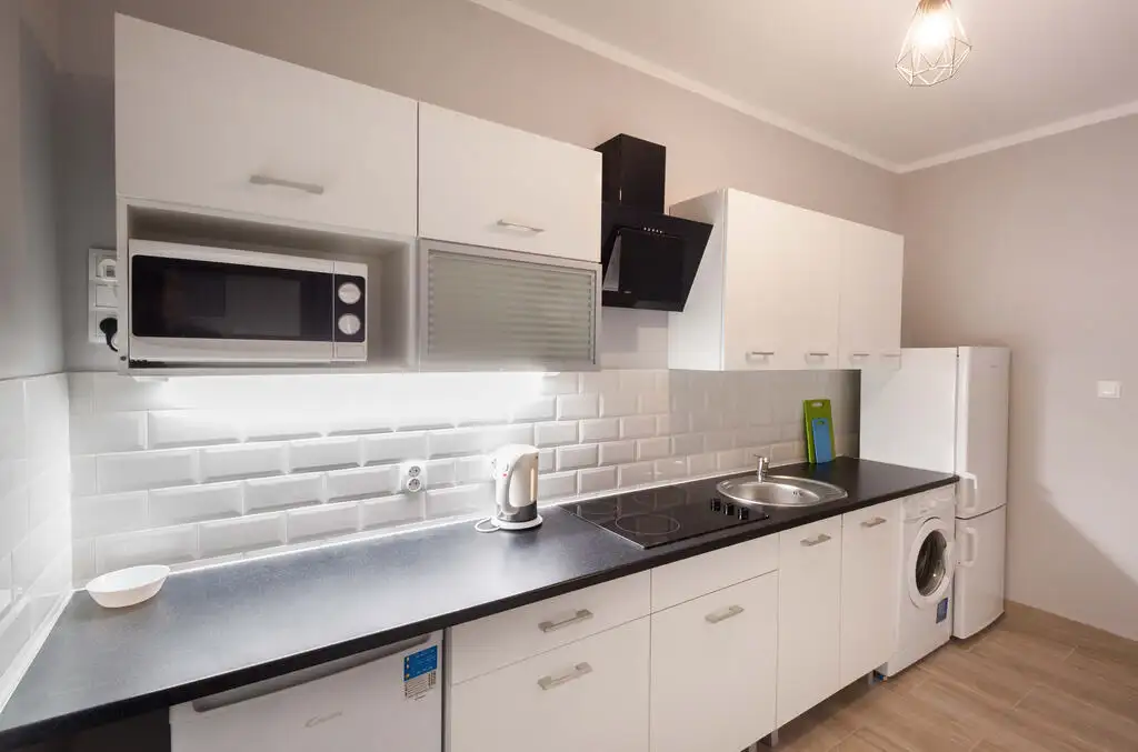 Lokator będzie miał dostęp do kuchni, korytarza, 2 łazienek. W kuchni znajdziemy 2 lodówki, opiekacz, okap, indukcję oraz półki do przechowywania. W łazienkach są prysznice. W mieszkaniu jest 9 pokoi.