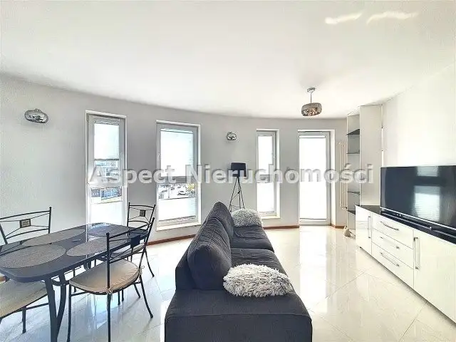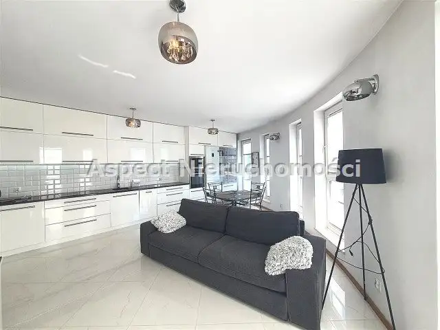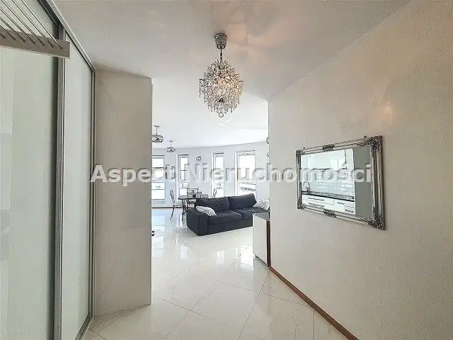 Mieszkanie ma funkcjonalny rozkład, dzięki czemu daje poczucie komfortu i przestrzeni. Jest w pełni umeblowane: szafy w zabudowie, kanapa z komodą i stojącą witryną w salonie, duże łóżka z materacami w sypialniach, stół i krzesła w aneksie kuchennym, zabudowa kuchenna na wymiar. Mieszkanie wyposażone jest w niezbędne urządzenia AGD i RTV tj. lodówka, zmywarka, pralka, płyta ceramiczna, piekarnik elektryczny, kuchenka mikrofalowa, okap oraz telewizor.