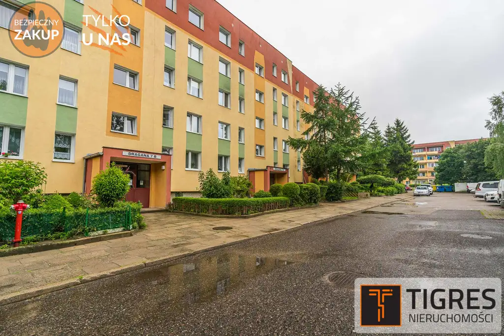 Mieszkanie znajduje się w Gdańsku, w dzielnicy Chełm, przy ul. Dragana. Okolica oferuje pełną infrastrukturę handlowo-usługową, liczne tereny rekreacyjne oraz doskonałe połączenie z centrum miasta. W pobliżu znajdują się przystanki autobusowe i tramwajowe, szkoły, przedszkola oraz sklepy.