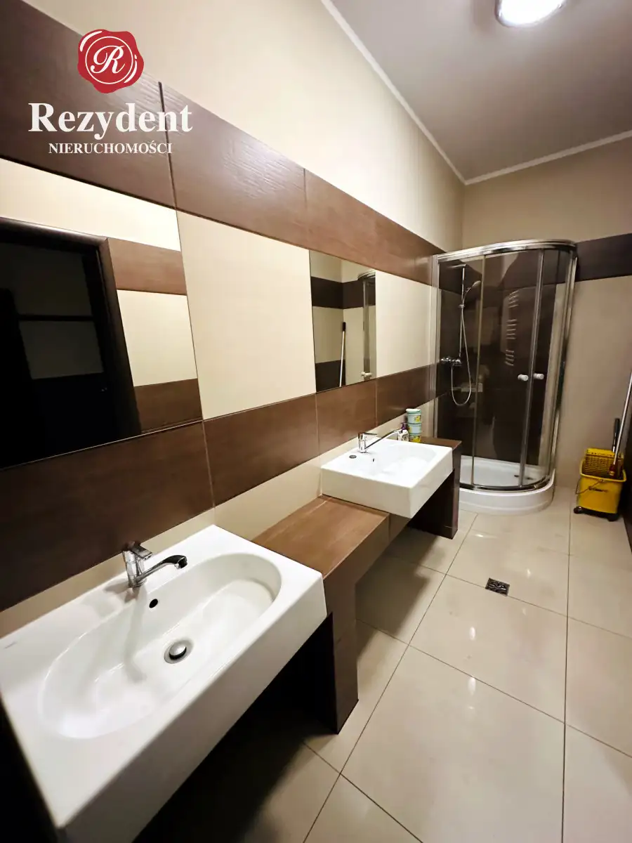 - Części biurowej z dużym pomieszczeniem sprzedaży (otwarty hall z miejscami na kilka stanowisk do kontaktu z klientami-54m2, osobne biuro idealne dla osoby zarządzającej firmą - ponad 25m², osobna toaleta 3,25m2, aneks kuchenny w ciągu komunikacyjnym ponad 8m2.