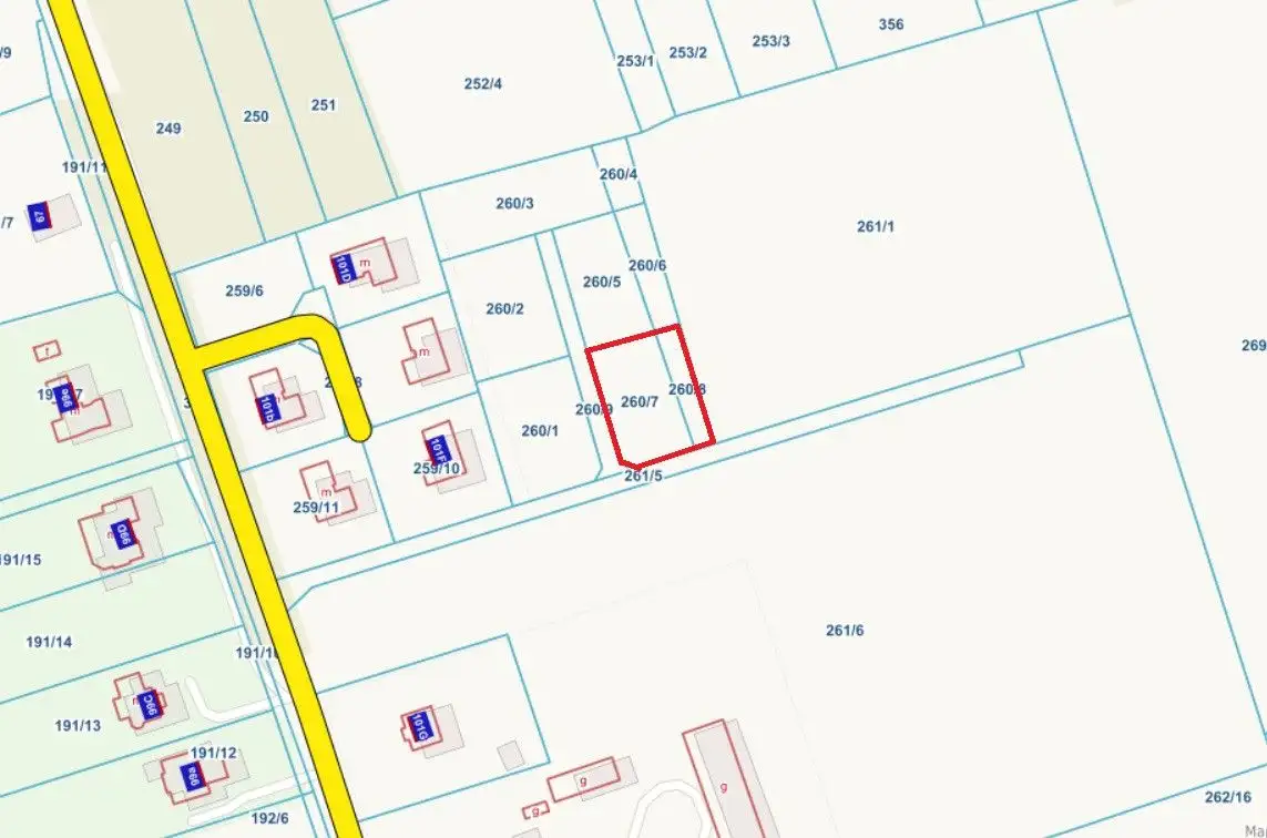 Wymiary działki 35x28, pierwsza linia zabudowy przy wewnętrznej drodze (udziały).