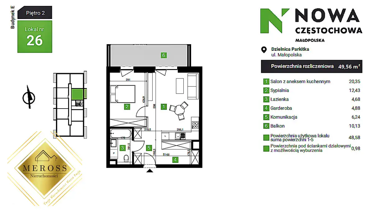 Biuro MEROSS Nieruchomości przedstawia do sprzedaży mieszkanie z najnowszej inwestycji PARK MAŁOPOLSKA, zlokalizowanej w dzielnicy Parkitka w Częstochowie. Lokal mieszkalny...