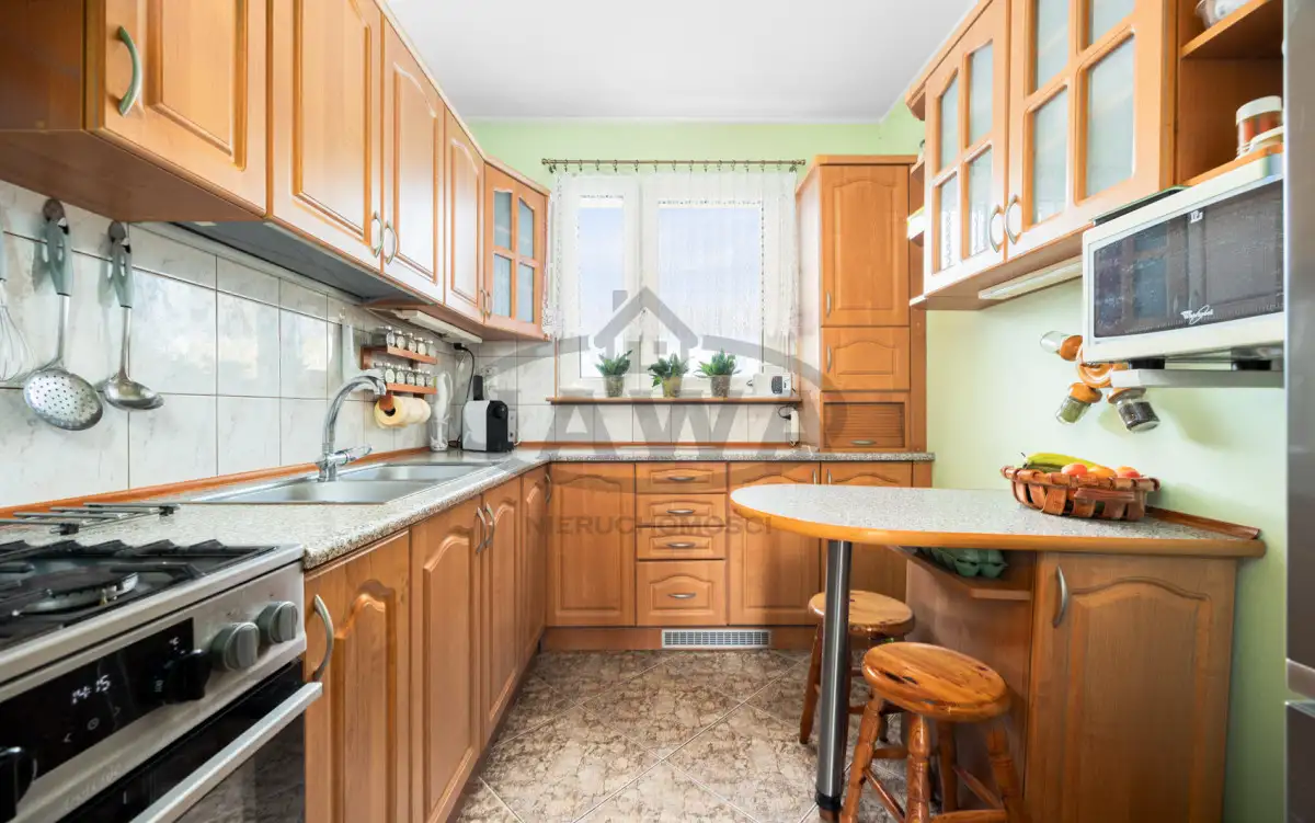 Mieszkanie składa się salonu z balkonem, dwóch osobnych sypialni, łazienki, toalety i kuchni. Salon z balkonem oraz jedna z sypialni są usytuowane od strony południowego zachodu, kuchnia, łazienka oraz druga sypialnia mają ekspozycje na północny wschód. Dbając o swój komfort, właściciele od strony zachodniej zamontowali zewnętrzne rolety okienne. Na podłodze w korytarzu, kuchni, łazience oraz toalecie położone są płytki. W dwóch sypialniach oraz w salonie na podłodze są panele podłogowe w bardzo dobrym stanie. W całym mieszkaniu na ścianach są gładzie. Wszystkie okna w mieszkaniu są oknami PCV i nie wymagają wymiany. Kuchnia wyposażona jest piekarnik, lodówkę, płytę gazową, okap. Wszystkie wymienione sprzęty AGD są w cenie mieszkania. W łazience na wyposażeniu jest pralka, którą również przy zakupie przejmie nowy właściciel. MIeszkanie jest bardzo czyste i zadbane. Można wejść i odrazu zamieszkać, jednak jeśli zechcesz dostosować je do swojego stylu - nie będzie wymagało to dużego nakładu środków.