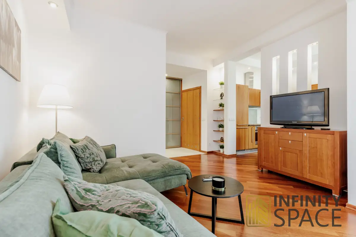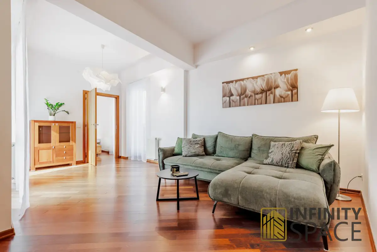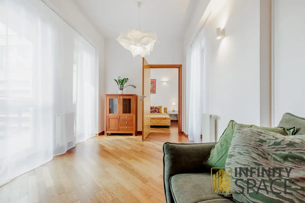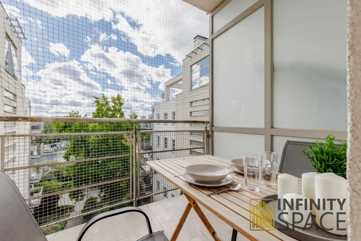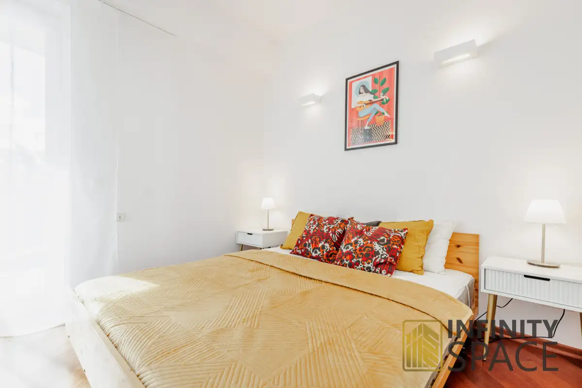 Location:The flat is located in Kamionek in the Praga-Południe district, close to the National Stadium. Directly behind the fence of the estate is one of the largest parks in Warsaw, namely Skaryszewski Park. It is an excellent place for rest, walks and physical activity. In the area there are many good restaurants, service establishments and other services for a comfortable life. Here you will also find a Veturillo bike station and numerous InPost, DPD, DHL parcel machines.