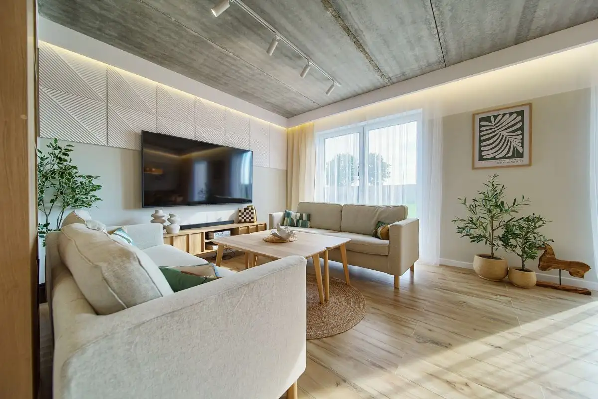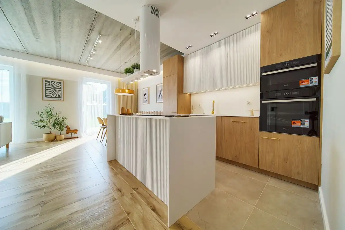 DOM POKAZOWY - jest to segment skrajny z większym ogrodem. To nie jest wizualizacja - to gotowa, pachnąca nowością przestrzeń do życia, której wnętrze wyszło prosto spod ręki profesjonalnej projektantki wnętrz. Każdy detal został tu starannie przemyślany, by stworzyć spójną i luksusową całość.