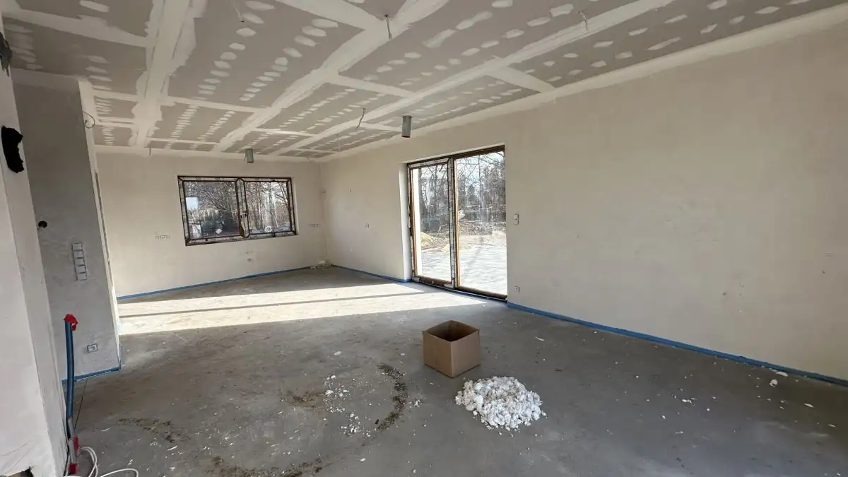 Wykonane będą wszystkie instalacje, tynki, posadzki, centralne ogrzewanie z kondensacyjnym piecem gazowym, rekuperacja.