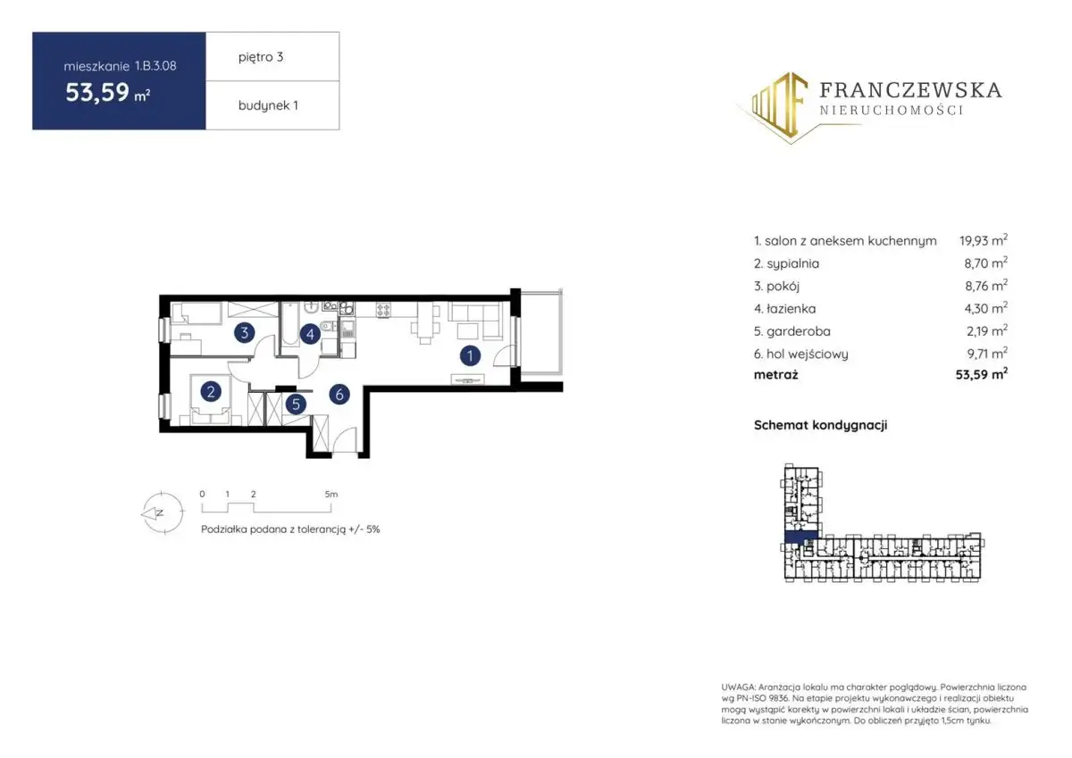 Trzypokojowe mieszkanie o powierzchni projektowej 53,59 m² na 0 p. / 5 p. na Bazylianówce.