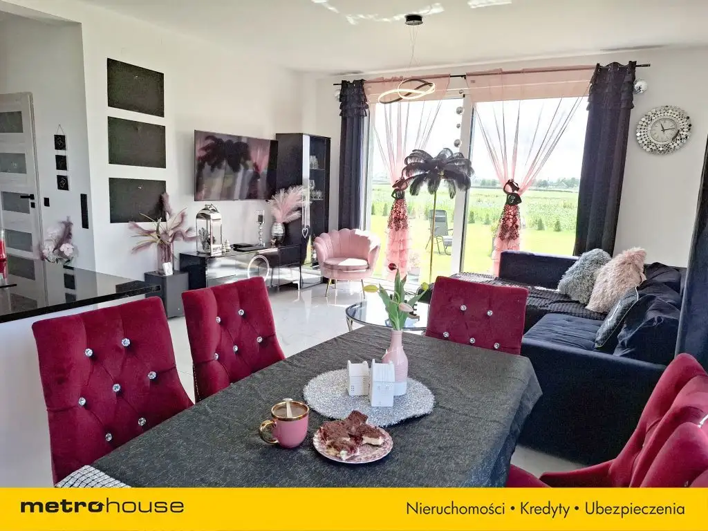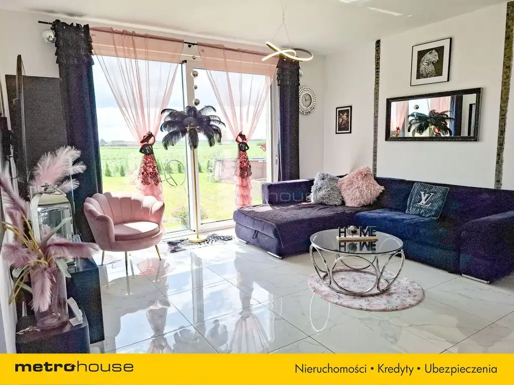 Przez duże, tarasowe okno w salonie wychodzi się bezpośrednio na ogród idealne miejsce do relaksu i rodzinnych spotkań.