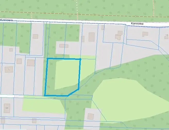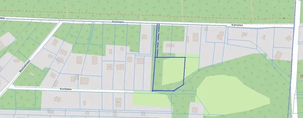Dojazd od ulicy Kaniowej może być wytyczony jako odrębna działka o pow. ok. 260 m.kw (5 m szerokości) do powiększenia sprzedawanej działki 187/64, w cenie 150 zł/m²