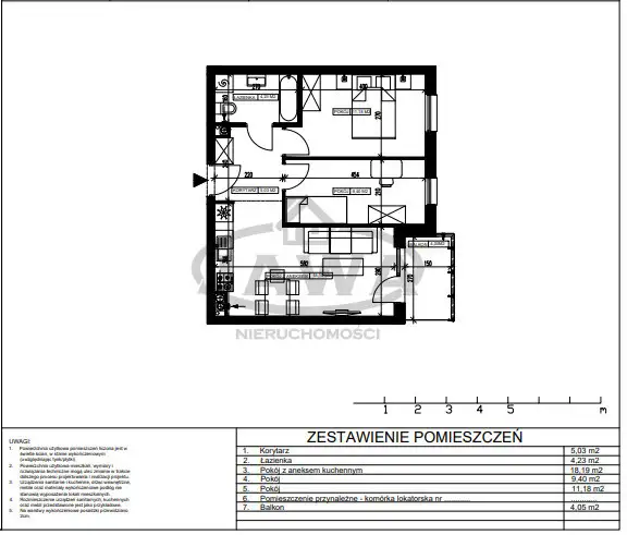 • Liczba pokoi / układ: Salon z aneksem kuchennym, dwie sypialnie, łazienka z wc.