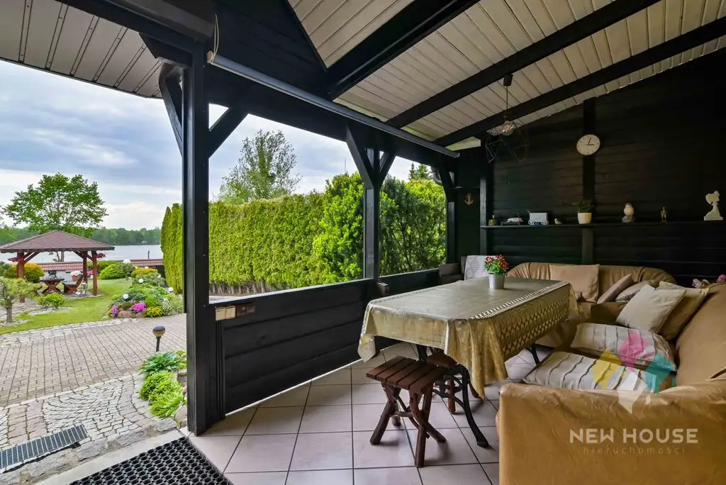 Dodatkowo znajdziemy w budynku zadaszone przejście do jeziora o pow. 31,11 m² - obecnie wykorzystywane jako hall w deszczowe dni.