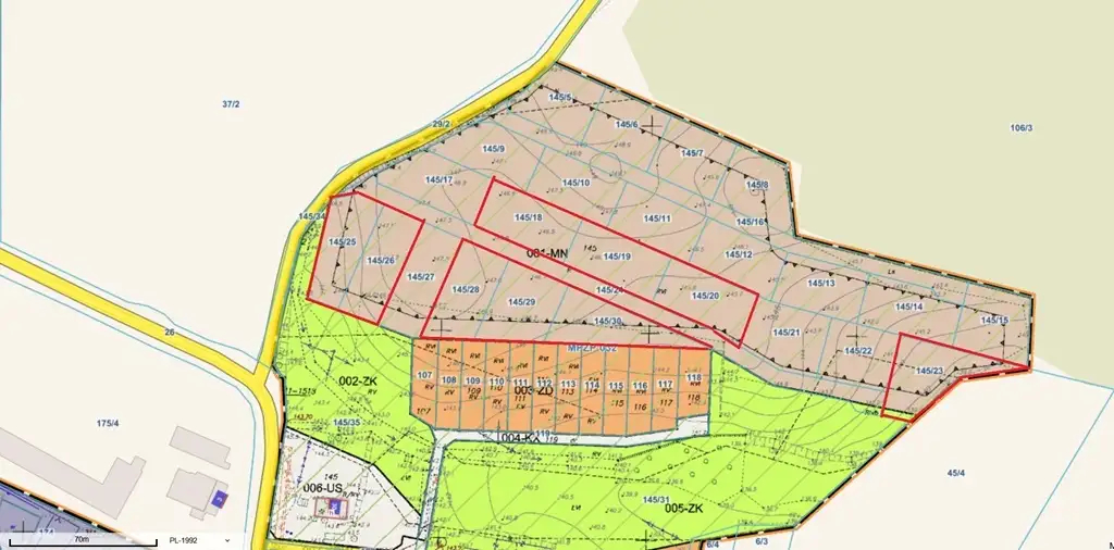 Nieruchomości są niezabudowane, nie są uzbrojone w media, położone są w kompleksie działek budowlanych. W miejscowym planie zagospodarowania przestrzennego działki przeznaczone są na cele zabudowy mieszkaniowej jednorodzinnej.