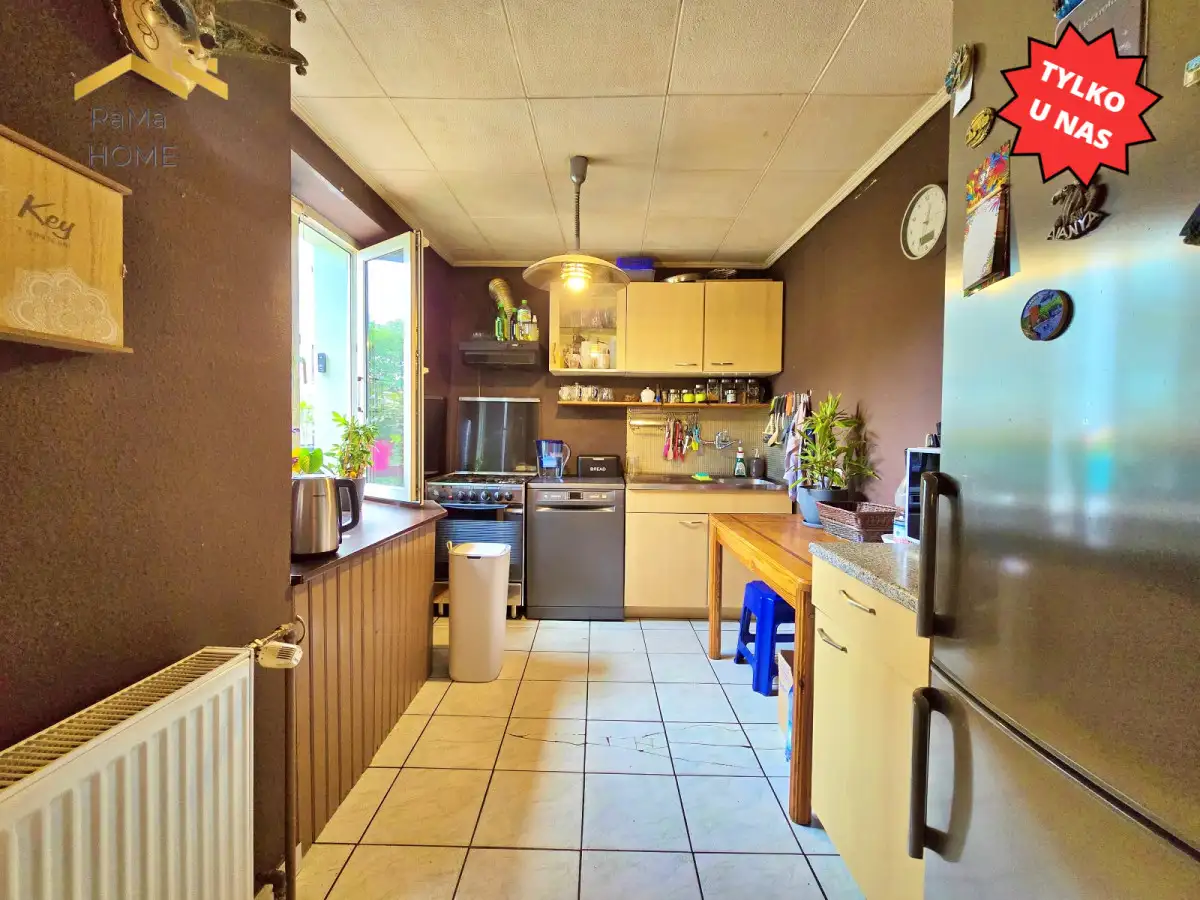 I piętro 72m²: 3 pokoje (każdy z balkonem), kuchnia zamykana z oknem, łazienka z oknem, przedpokój