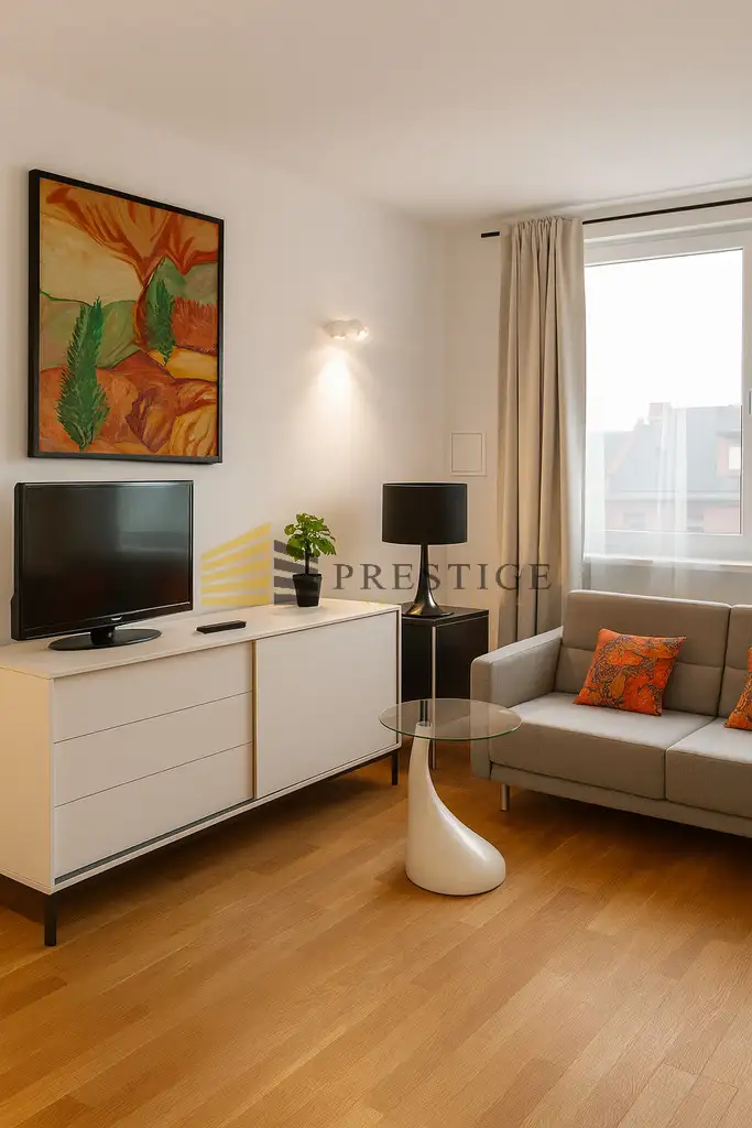Prestige Nieruchomości presents a high-standard two-room apartment with an area of 42 m², fully furnished and equipped, located in Powiśle.