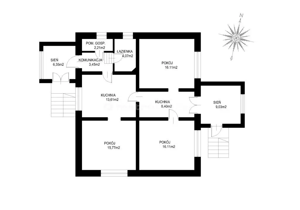 * dwa osobne wejścia, dzięki czemu mogą tu zamieszkać dwie rodziny lub część nieruchomości można przeznaczyć na działalność gospodarczą.
