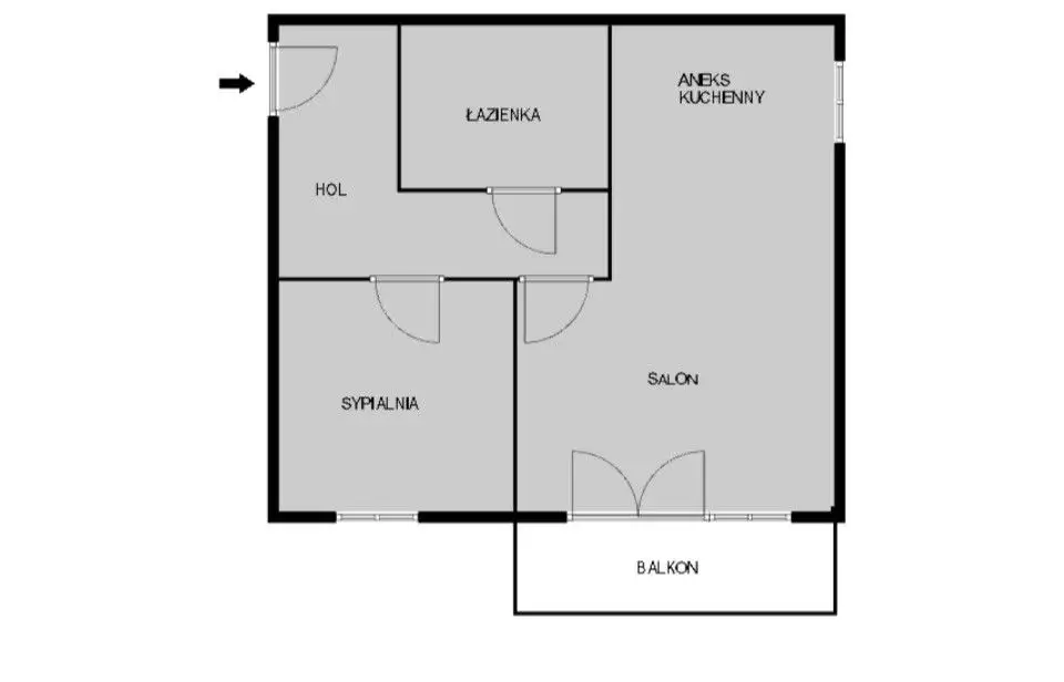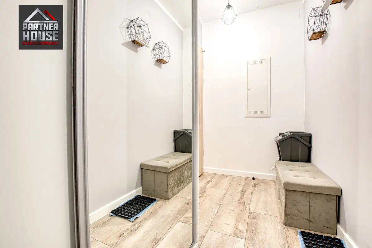 Funkcjonalny układ - przestronny salon z aneksem kuchennym, ustawna sypialnia oraz nowoczesna łazienka z prysznicem typu walk-in.
