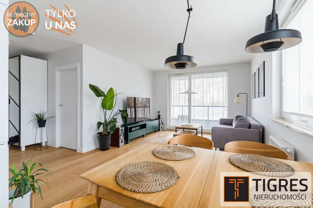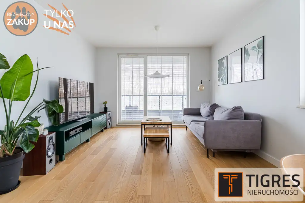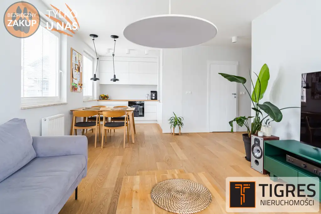 * Salon z aneksem kuchennym i wyjściem na balkon - pełen światła, z pięknymi drewnianymi deskami na podłodze. To przestrzeń, która buduje klimat całego mieszkania. Nie ma tu zbędnych elementów. Jest styl, nowoczesność i harmonia.