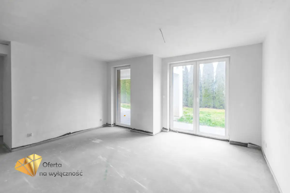 - Pokój dzienny o pow. 26,08 m² z wyjściem na taras o pow. 21m² oraz ogródka o pow. 123 m²;