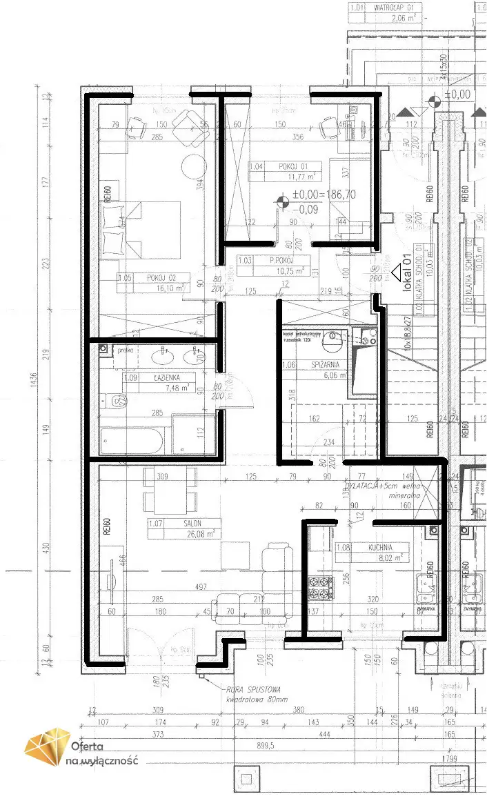 - Kuchnią o pow. 8,02 m²; ( możliwość zrobienia pokoju)