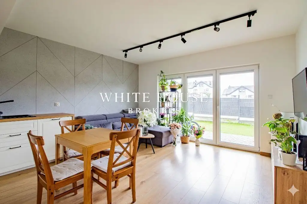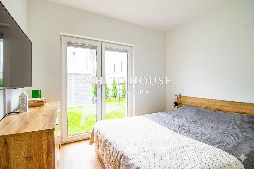 - salon z aneksem kuchennym (ze sprzętem agd), z wyjściem na ogród z widokiem na zieleń, bez ruchu ulicznego,
