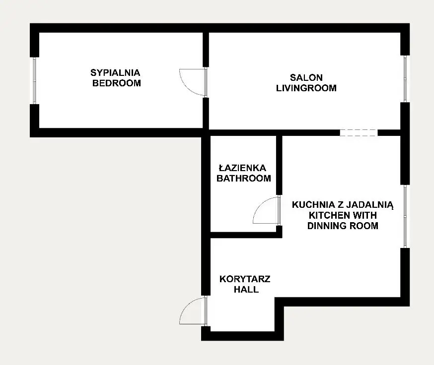 Pokoje: Przedsionek, jadalnia z aneksem kuchennym, salon, sypialnia , łazienka