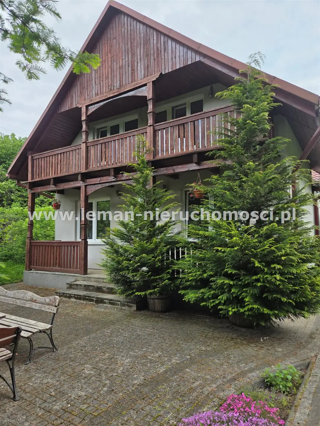 PIĘTRO: ok.31m², 2 sypialnie ze skosami o pow. 18 i 8m² (podłoga z desek) i WC. Sypialnie mają wspólny duży, drewniany balkon z widokiem na las.