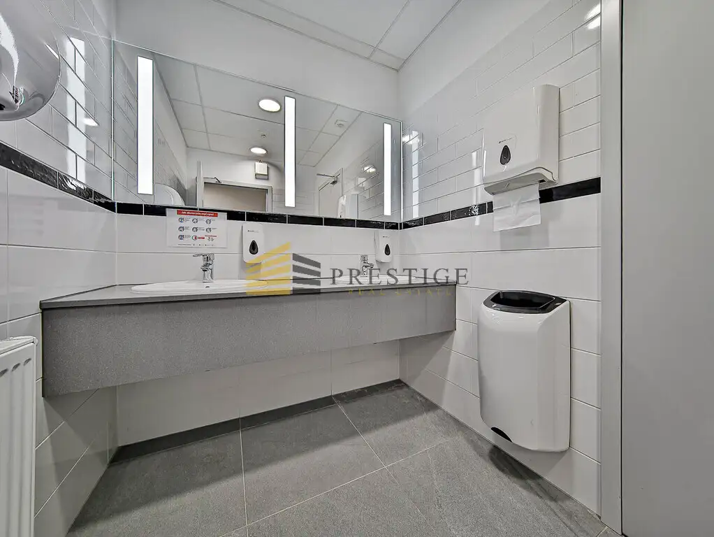 Lokal o powierzchni niespełna 132 m² wyróżnia się dużymi witrynami, które gwarantują świetną ekspozycję oraz przyciągają uwagę potencjalnych klientów. Elegancka szklana fasada budynku harmonijnie wpisuje się w nadwiślańskie otoczenie, podkreślając prestiż i nowoczesność tego miejsca.