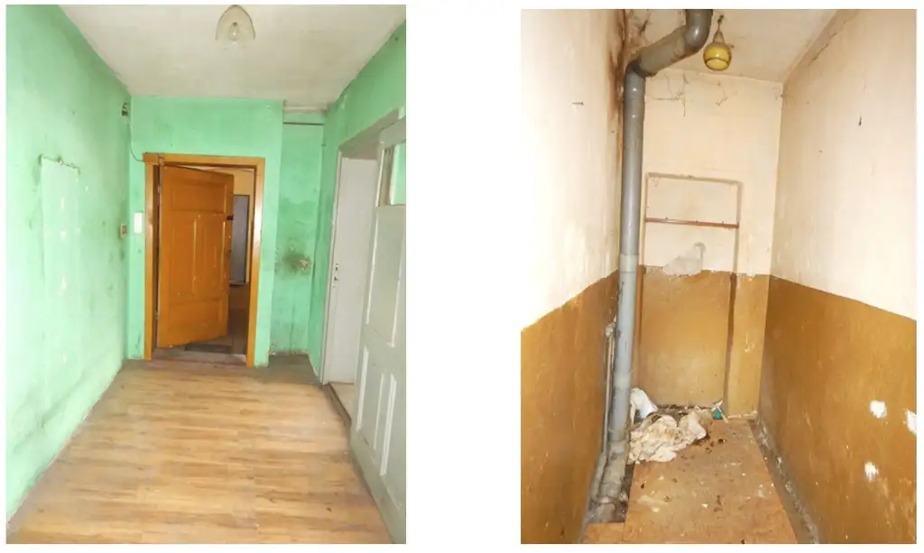 Układ funkcjonalny lokalu korzystny. Podłogi w mieszkaniu drewniane, częściowo wyłożone wykładzinami podłogowymi. Stolarka okienna z pcv, drzwi drewniane płycinowe. Ogrzewanie lokalu – piecowe. Wysokość pomieszczeń mieszkalnych 2,60 m. Lokal mieszkalny z pomieszczeniem przynależnym o przeciętnej funkcjonalności z uwagi na wejście do łazienki z wc przez kuchnię. Przedmiotowy lokal mieszkalny znajduje się w stanie wymagającym kapitalnego remontu. Wymiany na nowe wymagają wszystkie instalacje wewnętrzne (instalacja elektryczna, wodna, kanalizacyjna i gazowa – w dniu wyceny lokal nie posiada przyłącza instalacji elektrycznej i gazowej). Nowego rozwiązania wymaga system ogrzewania lokalu, ponieważ znajdujący się w nim piec kaflowy znajduje się w złym stanie technicznym. Wymiana instalacji wymusi wykonanie nowych tynków oraz okładzin ścian. Wymiany na nowe wymagają okna, drzwi wewnętrzne, zewnętrzne oraz wykładziny podłogowe.