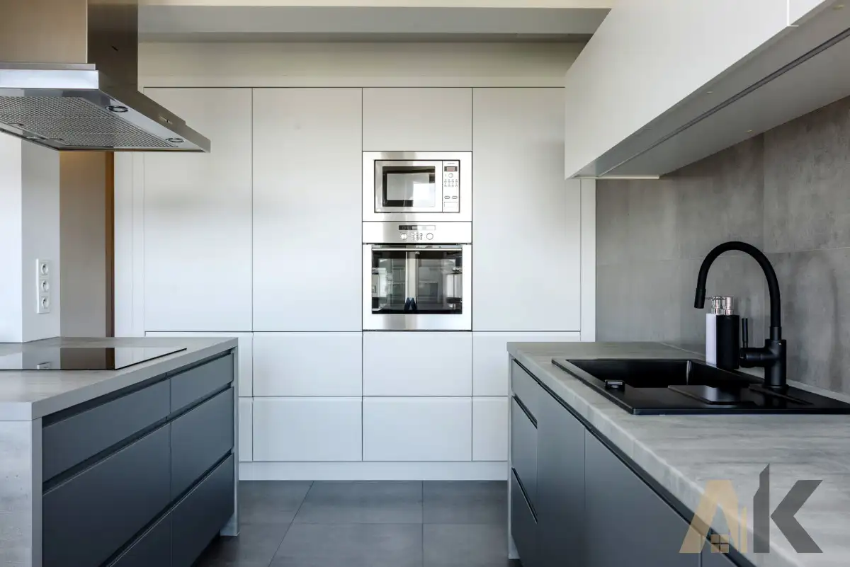W zabudowie kuchennej: zlewozmywak, zmywarka, lodówka, piekarnik płyta indukcyjna, okap w zabudowie meblowej. Dodatkowo - klimatyzacja.