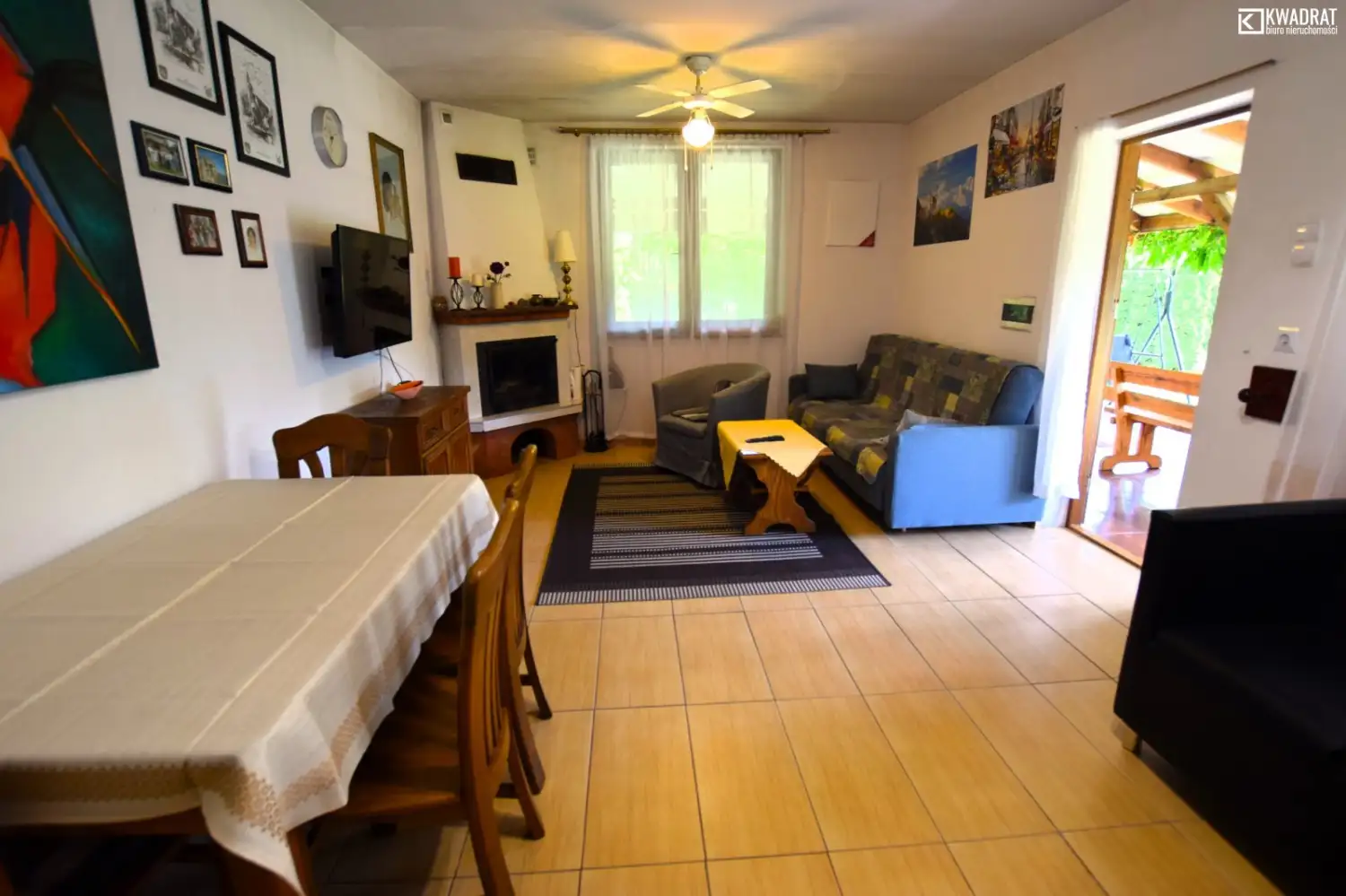 Dom wyposażony w kominek na drewno z rozprowadzeniem na salon i poddasze.