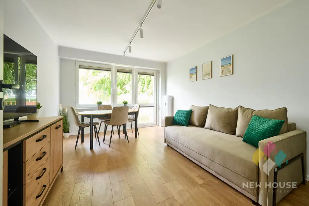 Mieszkanie 2-pokojowe, położone na parterze, o pow. użytkowej 38 m². Umeblowane, dwustronne, z balkonem. Właściciel zapewnia internet w mieszkaniu.