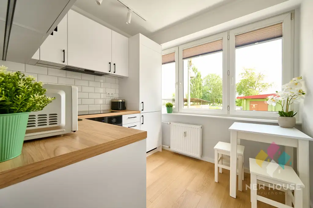 Świeżo po kapitalnym remoncie. 2-pokojowe umeblowane nowymi meblami i wyposażone nowymi sprzętami mieszkanie z balkonem, parter, położone w dobrym punkcie komunikacyjnym przy ul. Pana Tadeusza.