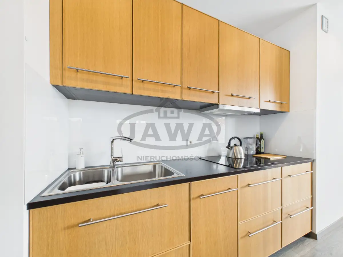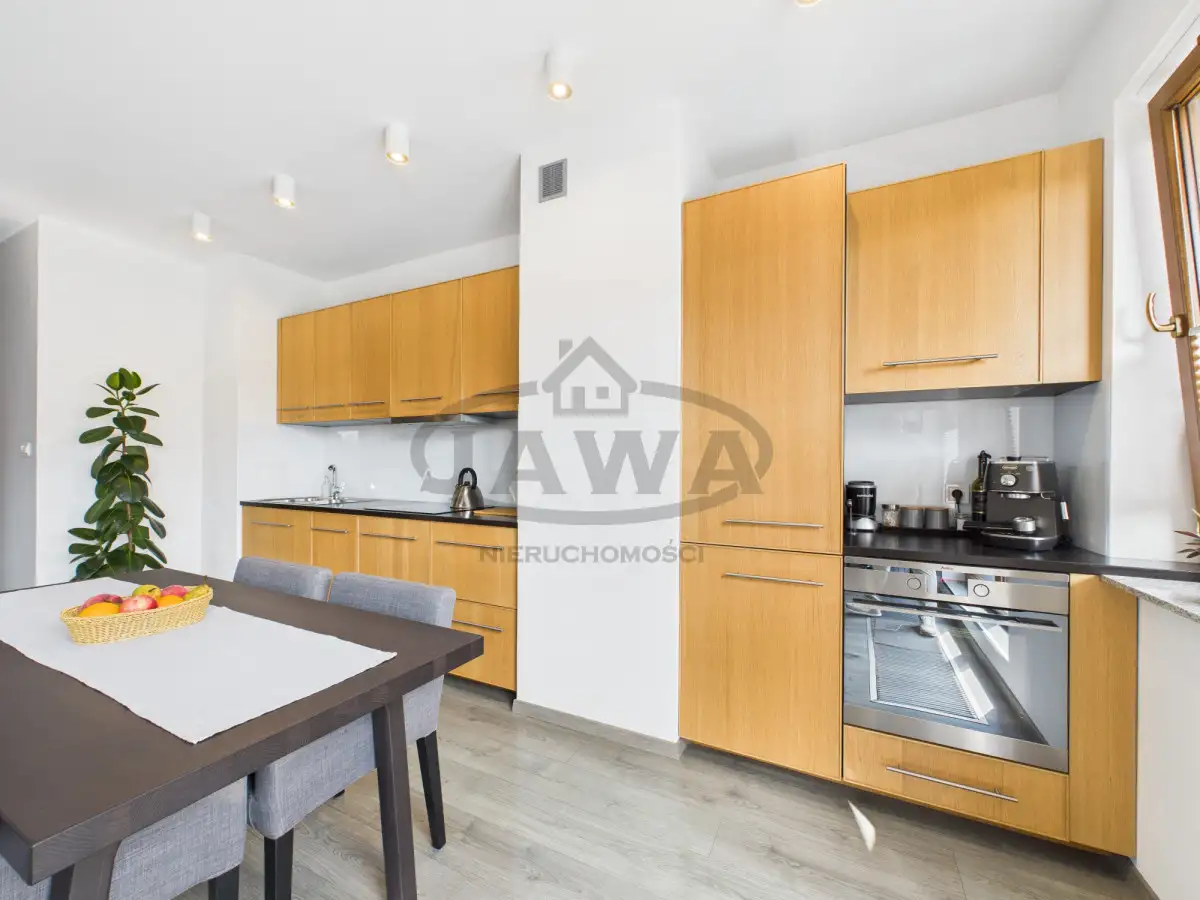 Aneks kuchenny - nowoczesny, w pełni wyposażony, z płytą indukcyjną, zabudowaną lodówką oraz piekarnikiem. Przemyślana zabudowa zapewnia wygodę użytkowania, a elegancka forma doskonale wpisuje się w styl mieszkania.