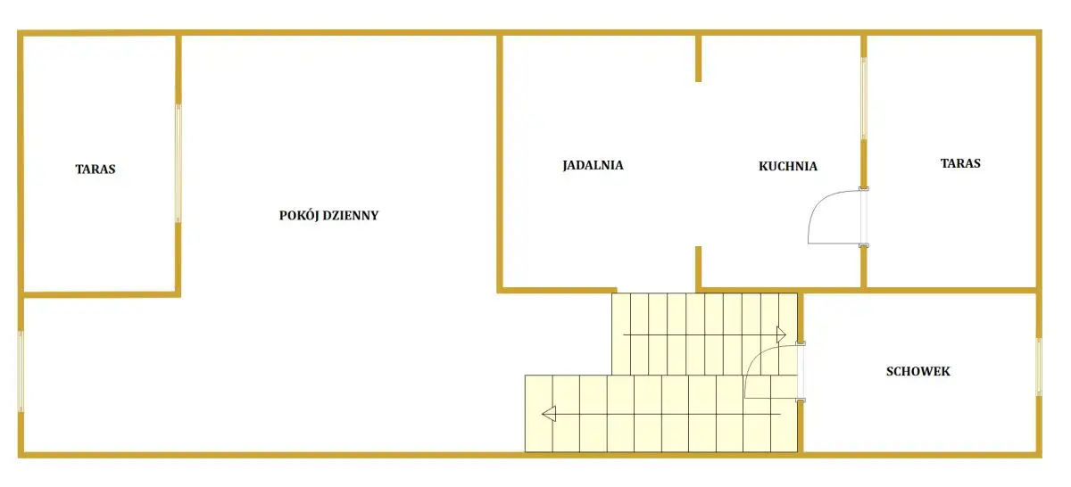 - kuchnia z jadalnią o pow. 17,3 m², otwarta na salon i z wyjściem na taras