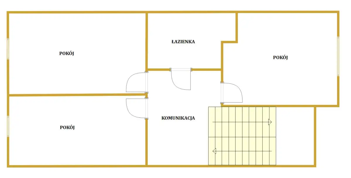 - 3 pokoje o pow. ok 10 m², 10 m² oraz 9,4 m²