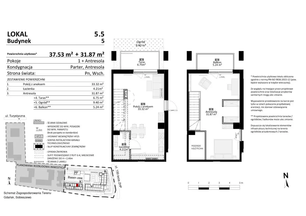 - Inwestycja znajduje się na malowniczej Wyspie Sobieszewskiej w Gdańsku, otoczonej lasami nadmorskimi i czystymi plażami, z szybkim dostępem do centrum Gdańska. Okolica oferuje bogactwo przyrodnicze z rezerwatami Ptasi Raj i Mewia Łacha, co czyni ją idealnym miejscem dla miłośników natury.