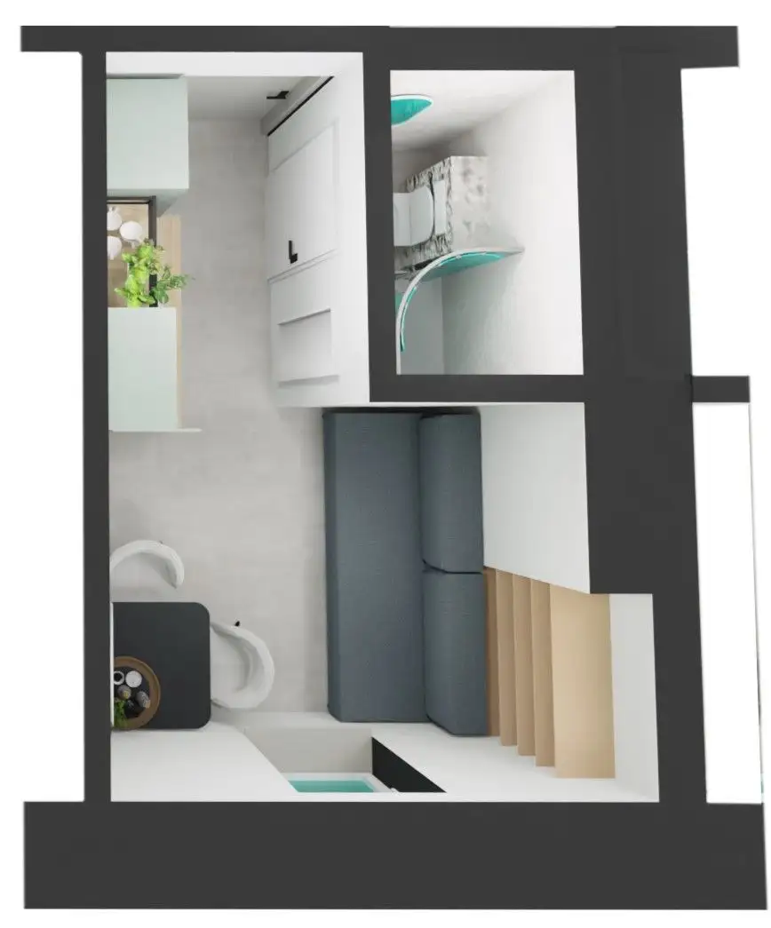 Pokój z aneksem kuchennym i łazienką, w pełni wyposażony i wykończony w wysokim standardzie w 2025 roku.