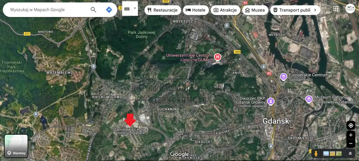 Świetne połączenia komunikacji miejskiej: do centrum Gdańska tramwajem z przystanku oddalonego od budynku około 5 minut spacerem. W odległości trzech przystanków tramwajowych znajduję się przystanek podmiejskiej kolei metropolitarnej.