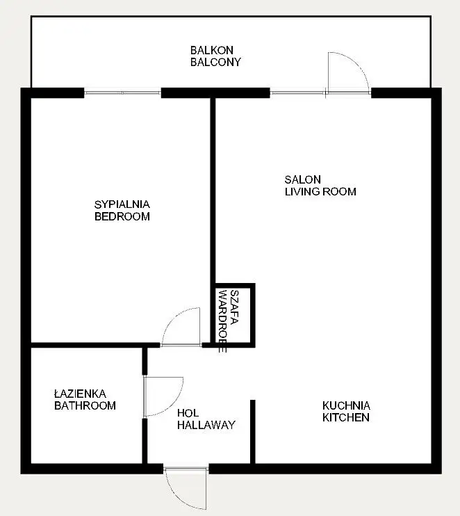 Pokoje: sypialnia, salon z aneksem kuchennym, hol, łazienka.