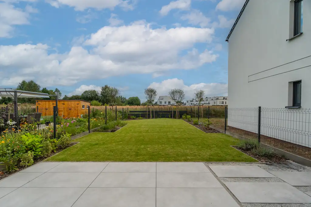 ✔ Duży taras + prywatny ogródek (131 m²). Przestrzeń wypoczynkowa od południowej strony zapewnia piękny widok na tereny zielone, a jednocześnie gwarantuje doskonałe nasłonecznienie przez cały dzień.