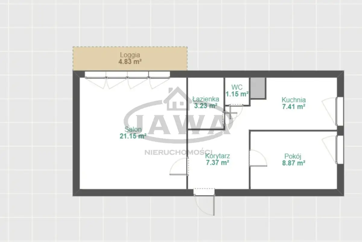 - dwóch niezależnych pokoi - 21m² i 9m²,